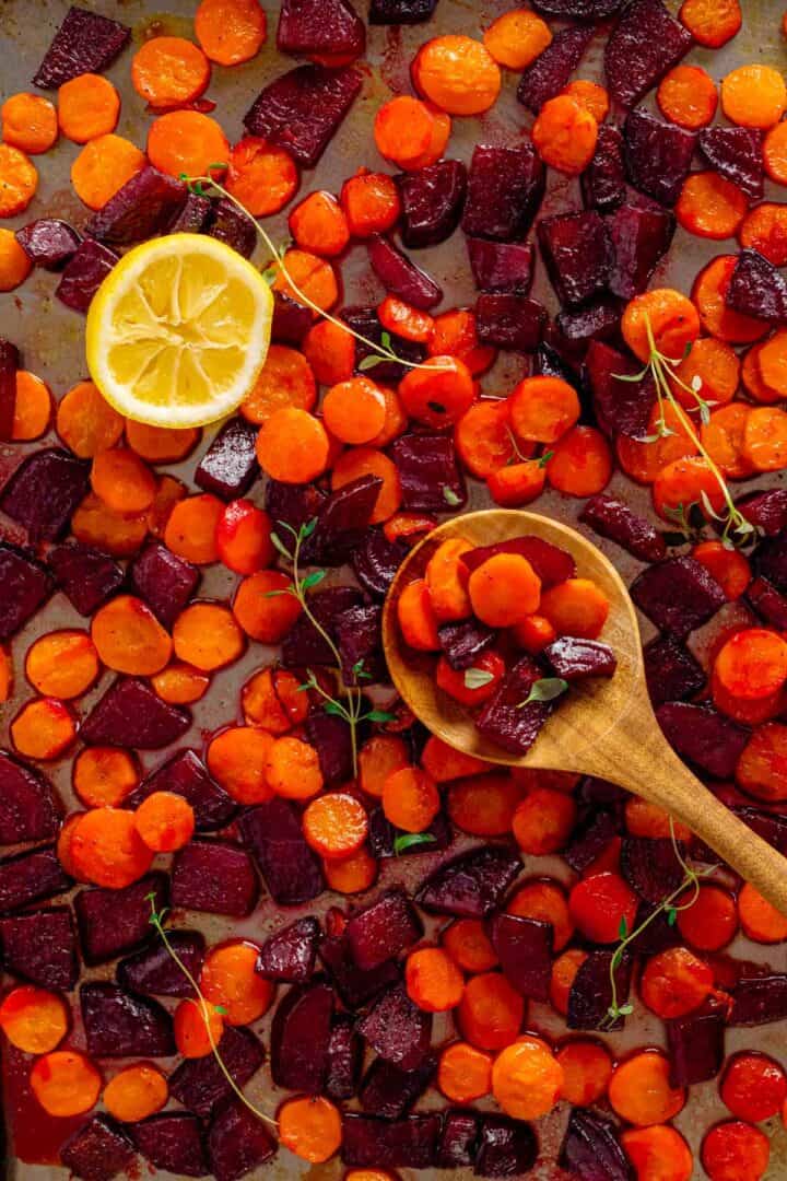 enjoy these sweet roasted beets and carrots with any main course, as they are perfect with anything!