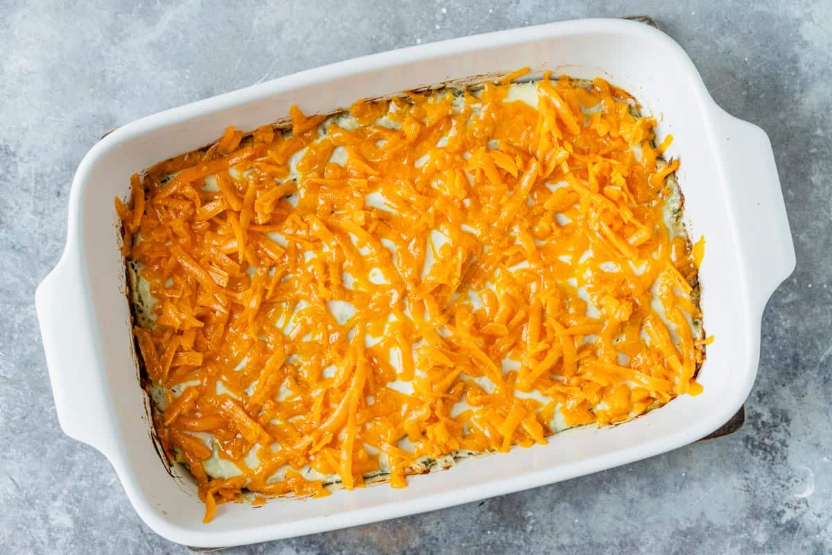 - Shredded cheese - make sure to cover the top generously so you’ll have a thicker layer of cheese once done. But it’s personal preference, you can also add only ¾ of a cup or less depending on the baking dish.