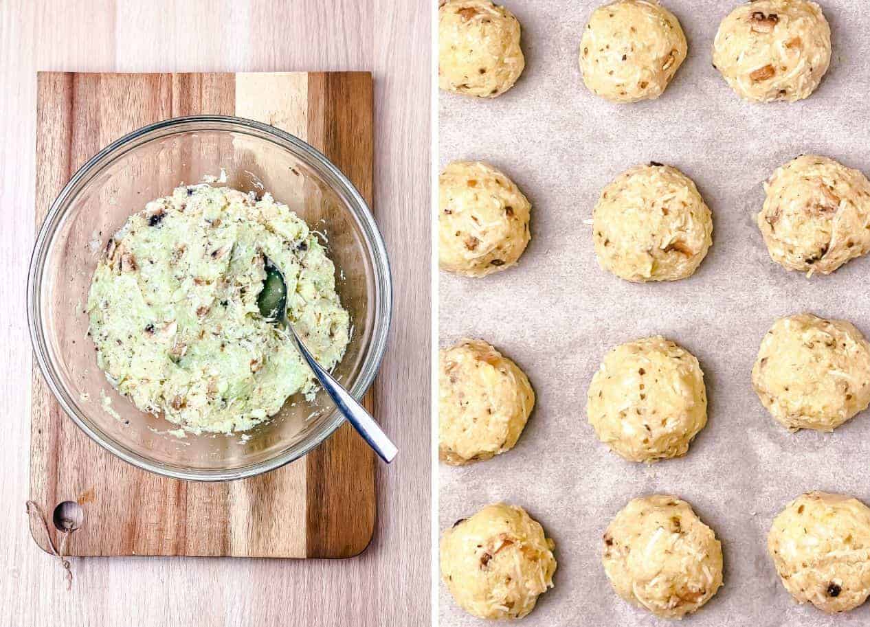 - Shape the mixture into small one tablespoon-size balls using your hands, and transfer to the baking sheet.