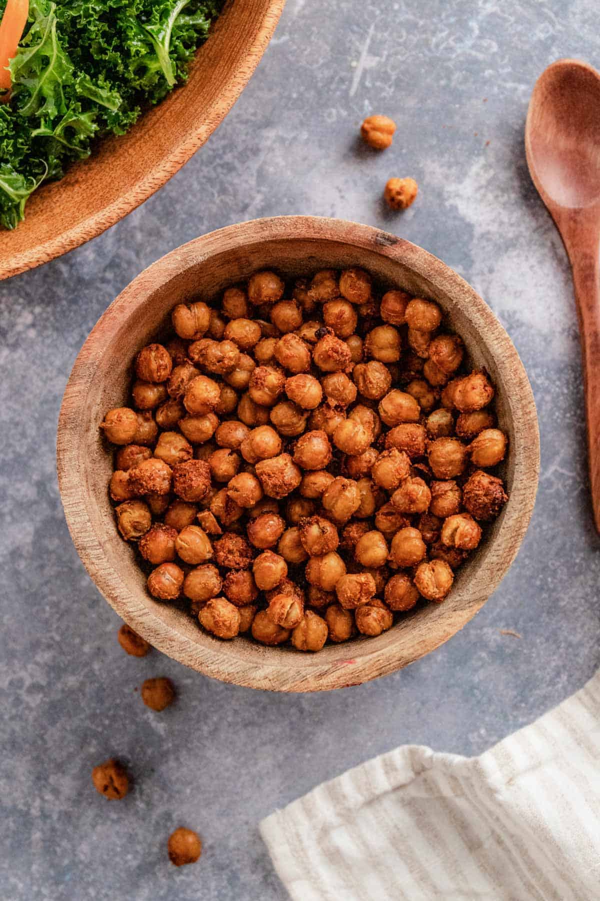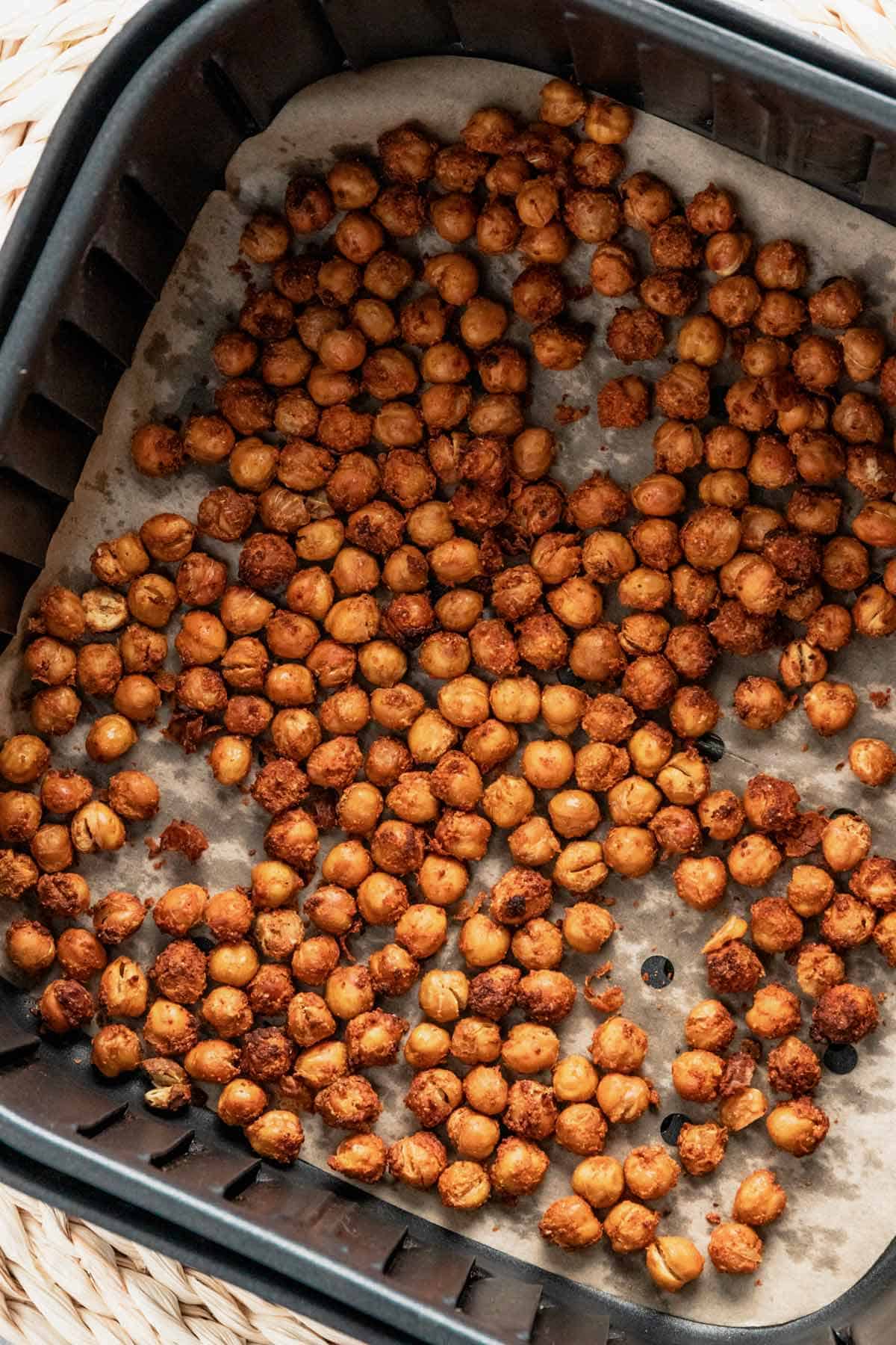 If the chickpeas are not crispy by the end of the cooking time, it could be due to overcrowding the air fryer basket which will cause the chickpeas to steam. Excess moisture in the chickpeas can also result in soft chickpeas.