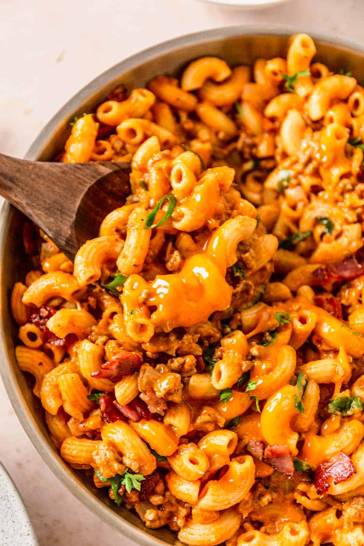 - Don’t overcook the pasta - if you do the pasta will absorb all the sauce and you end up with dry cheeseburger pasta. This is actually my personal preference, I know some folks like to have a very liquid pasta here but I like to stick to a medium sauce texture and cook the pasta for around 15-20 minutes. You’ll still have to add some extra liquid when reheating this dish later.