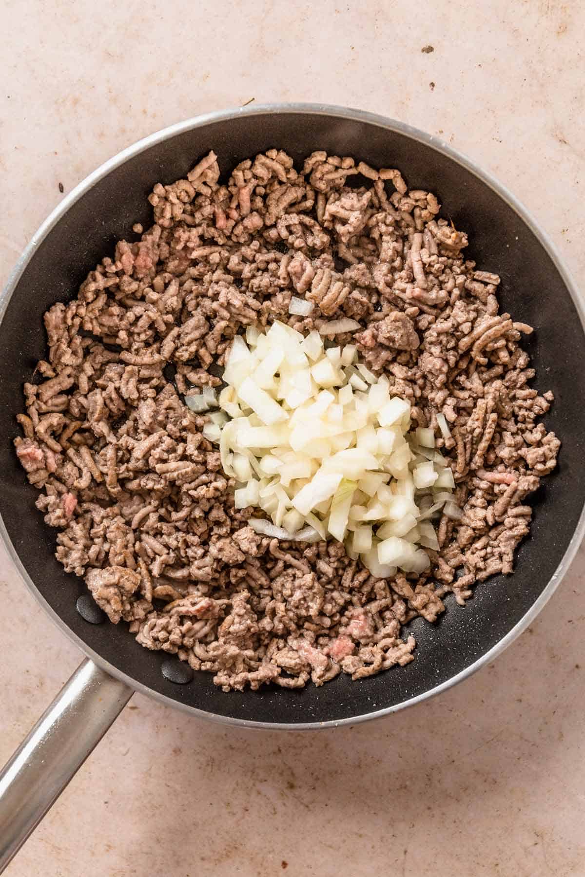 I like to use lean ground meat, as everything is cooked directly in one skillet without needing to drain anything (except my optional bacon). However this being said, it’s no issue if you use whatever ground meat you have and simply drain the fat before adding the flour and other ingredients.