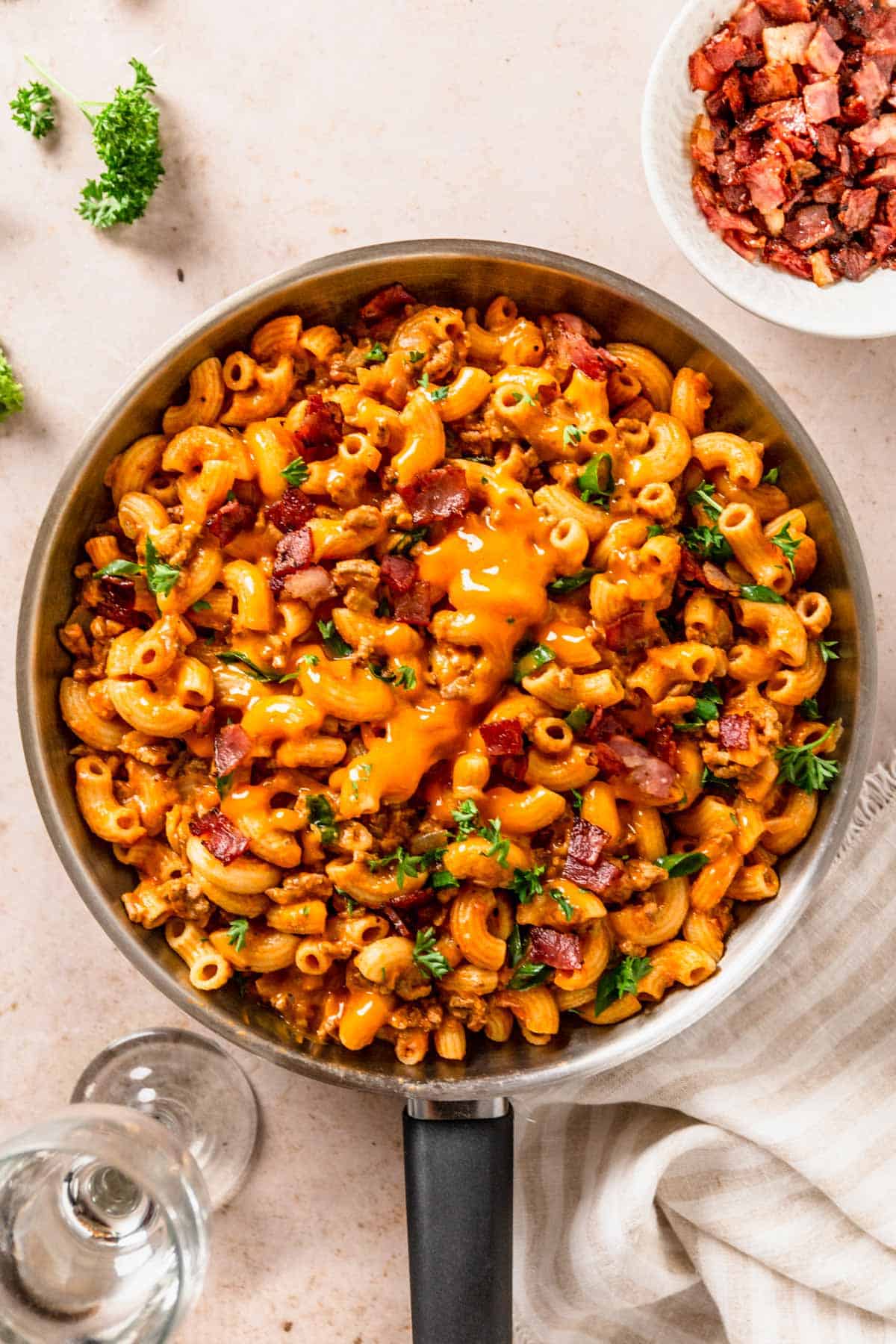 - Bacon - totally optional, but I like to stir it in the pasta as well as add it on top.