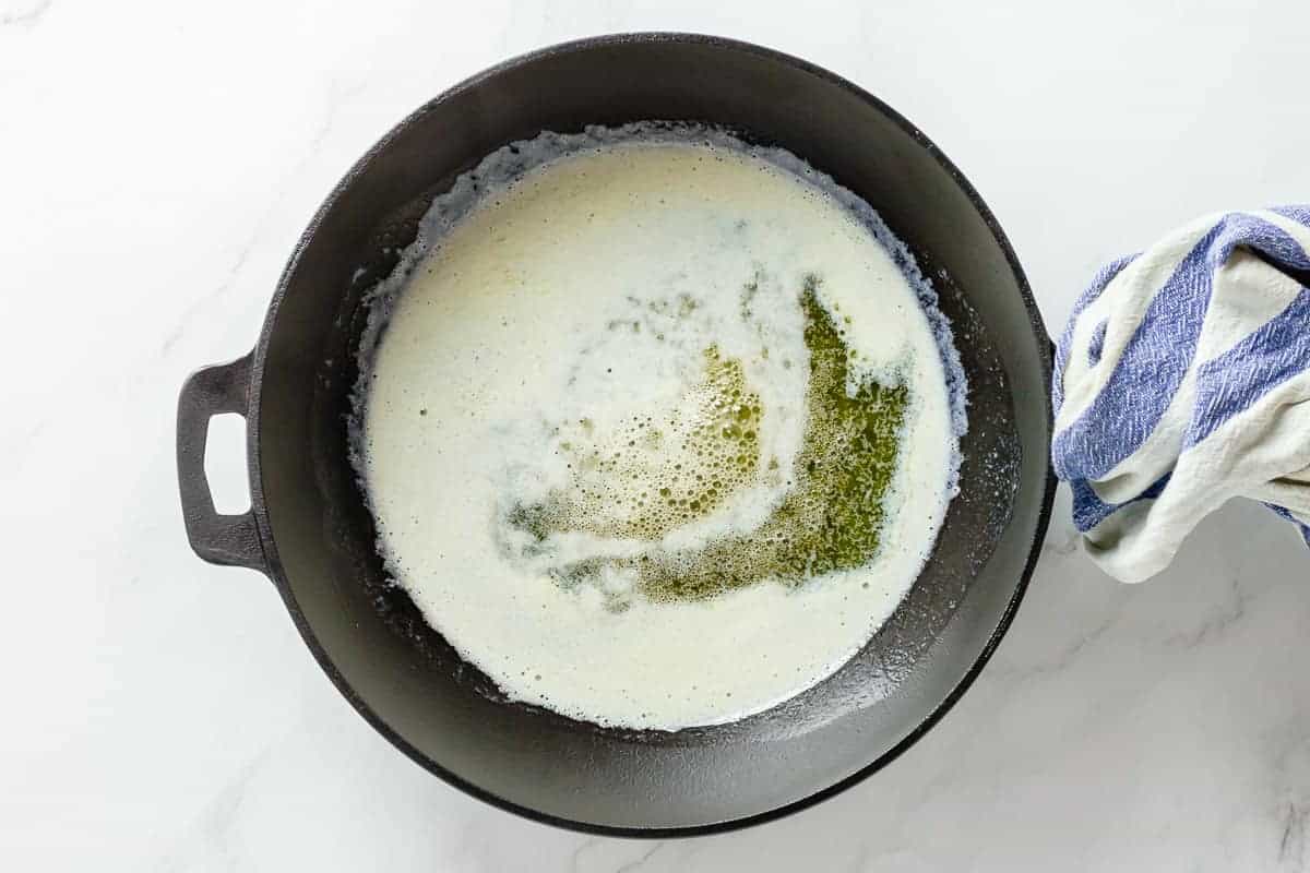 In a large (I used 10 inch) cast-iron skillet, melt the butter over medium heat.